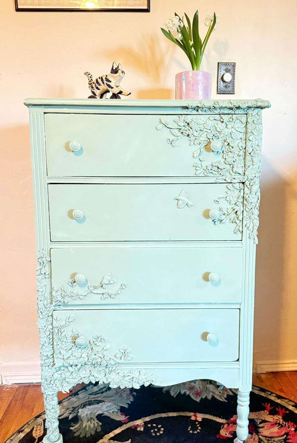Each element can be used individually or layered together to create flowing compositions across furniture panels, drawer fronts, signs, wall décor, trays, and mixed-media projects. The separate birds and branches make this mould especially flexible for both subtle embellishments and larger statement designs.