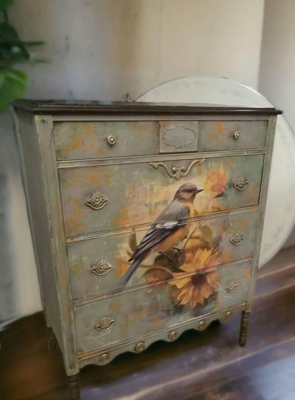 October Bluebird | Large Decoupage Tissue Paper for Furniture | 21x29 or 14x20 | Whimsykel Designs | Bird in Yellow Flowers