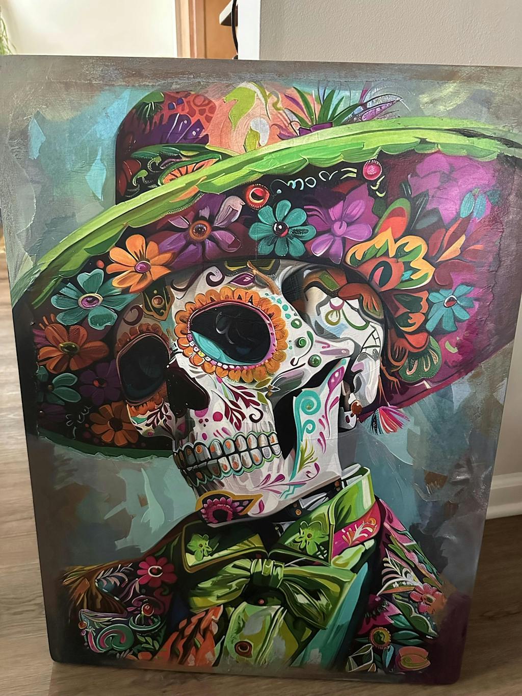 "Still Celebrating" is a vibrant Day of the Dead design featuring a well-dressed skeleton adorned in a colorful hat and suit. This lively artwork captures the festive spirit of the celebration, with the brightly decorated skull exuding charm and elegance. The intricate patterns and bold colors of the attire reflect the joy and reverence of Día de los Muertos, honoring the traditions of remembering and celebrating loved ones. "Still Celebrating" is a stunning tribute to the enduring spirit of the holiday, perfect for adding a touch of festive flair to any project.